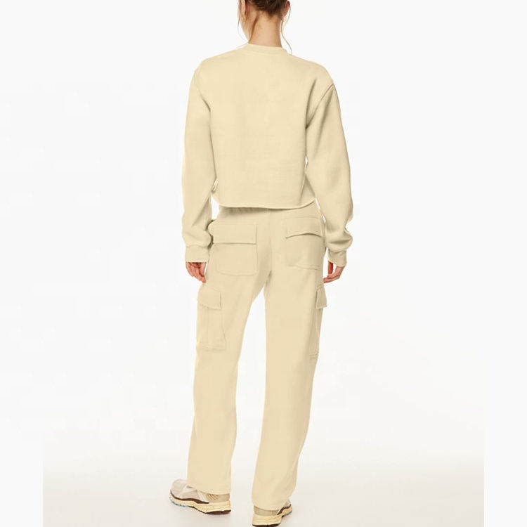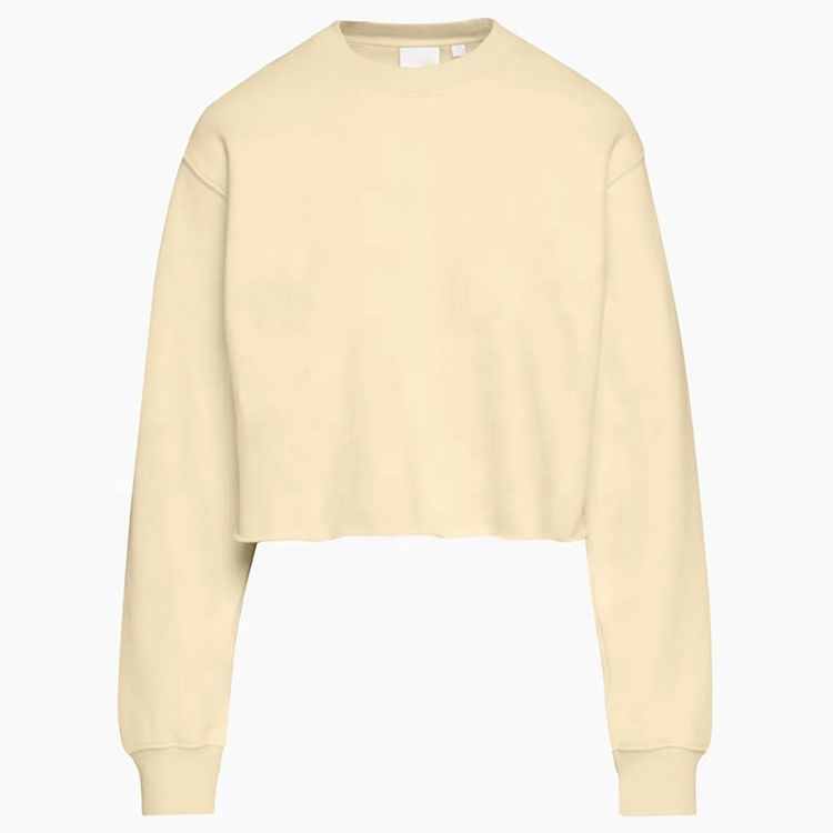 Sudadera con Capucha de Color Sólido de Primera Calidad Personalizada para Mujer, Sudadera Corta con Dobladillo sin Rematar, Conjunto de Sudadera 100% Algodón Ecológico