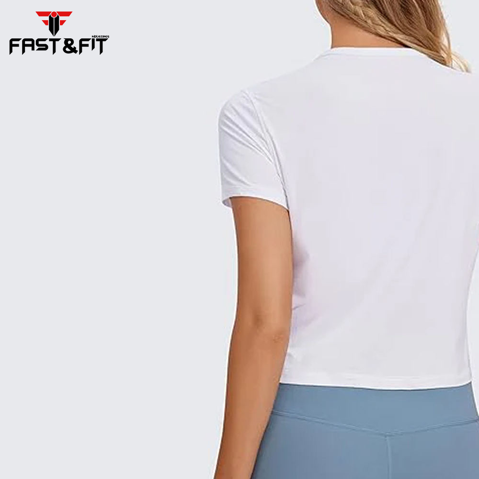 Ropa deportiva larga con logotipo estampado personalizado para mujer, Top corto de manga larga en tela de punto de Color sólido, diseño personalizado al por mayor