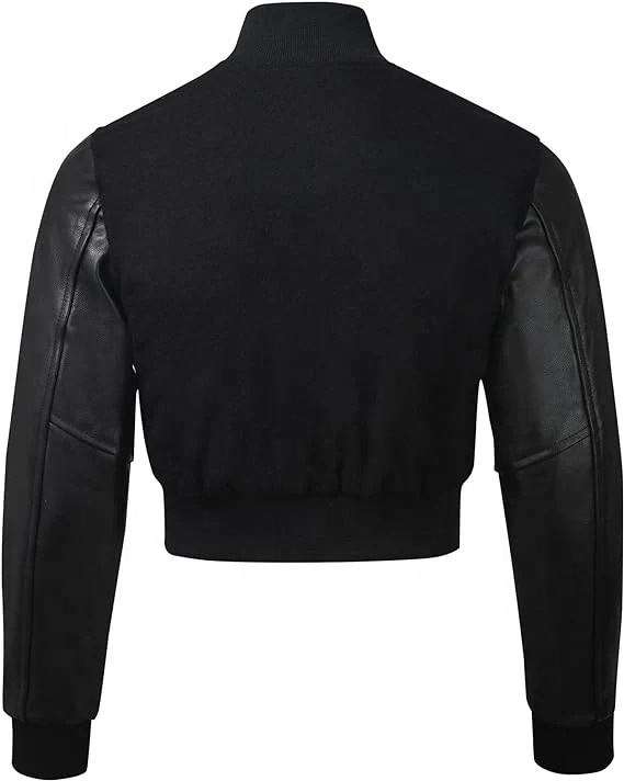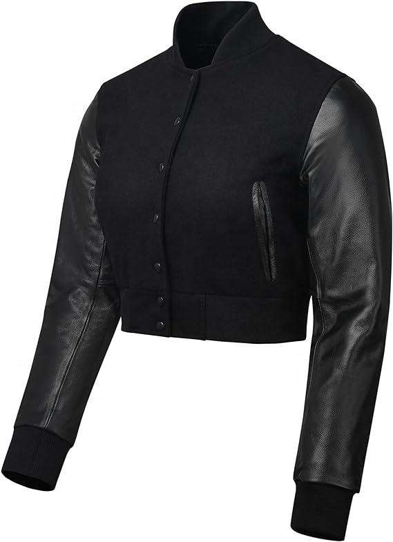 Chaqueta Universitaria Acolchada Corta Personalizada para Mujer, Estilo Letterman, con Remaches Tejidos, Diseño Sólido, Impermeable para Invierno, Tinte Liso