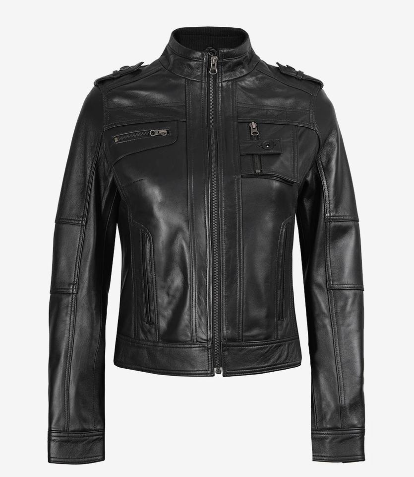 Chaqueta de cuero negro con botón a presión de cintura personalizada para mujer, ropa informal transpirable, ropa deportiva para motociclistas, ropa de cuero para carreras