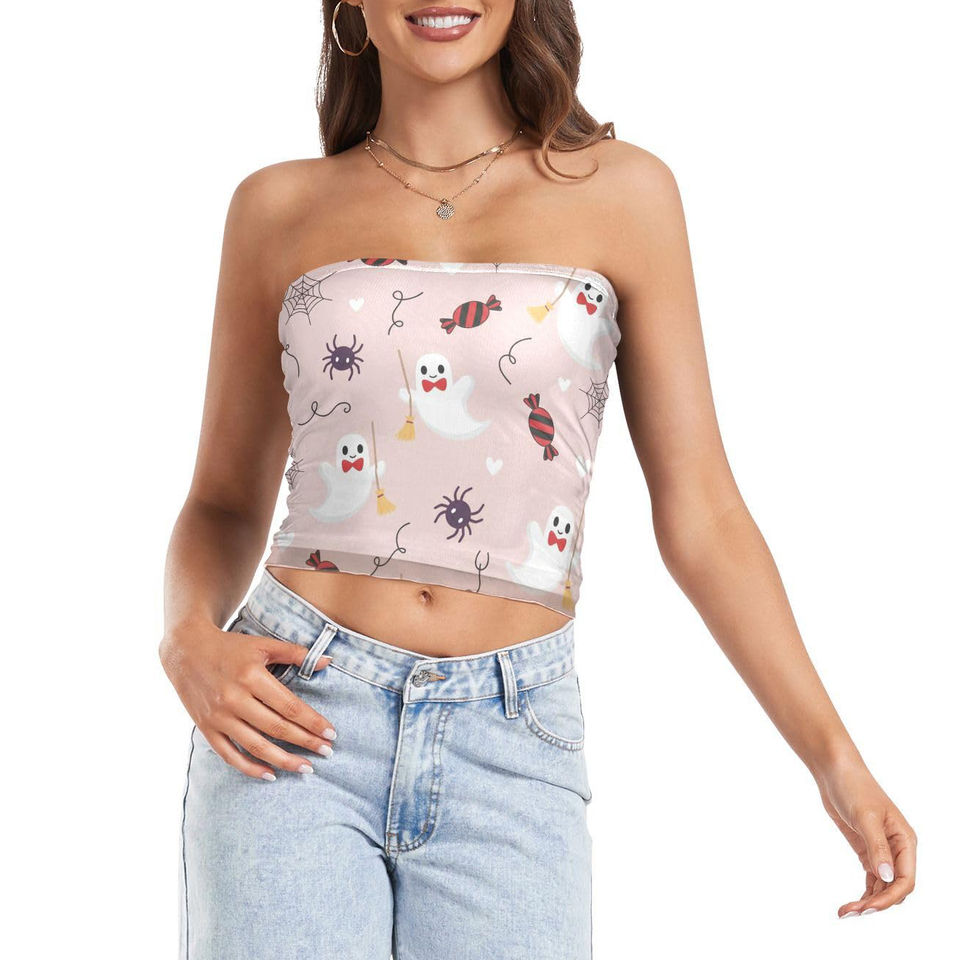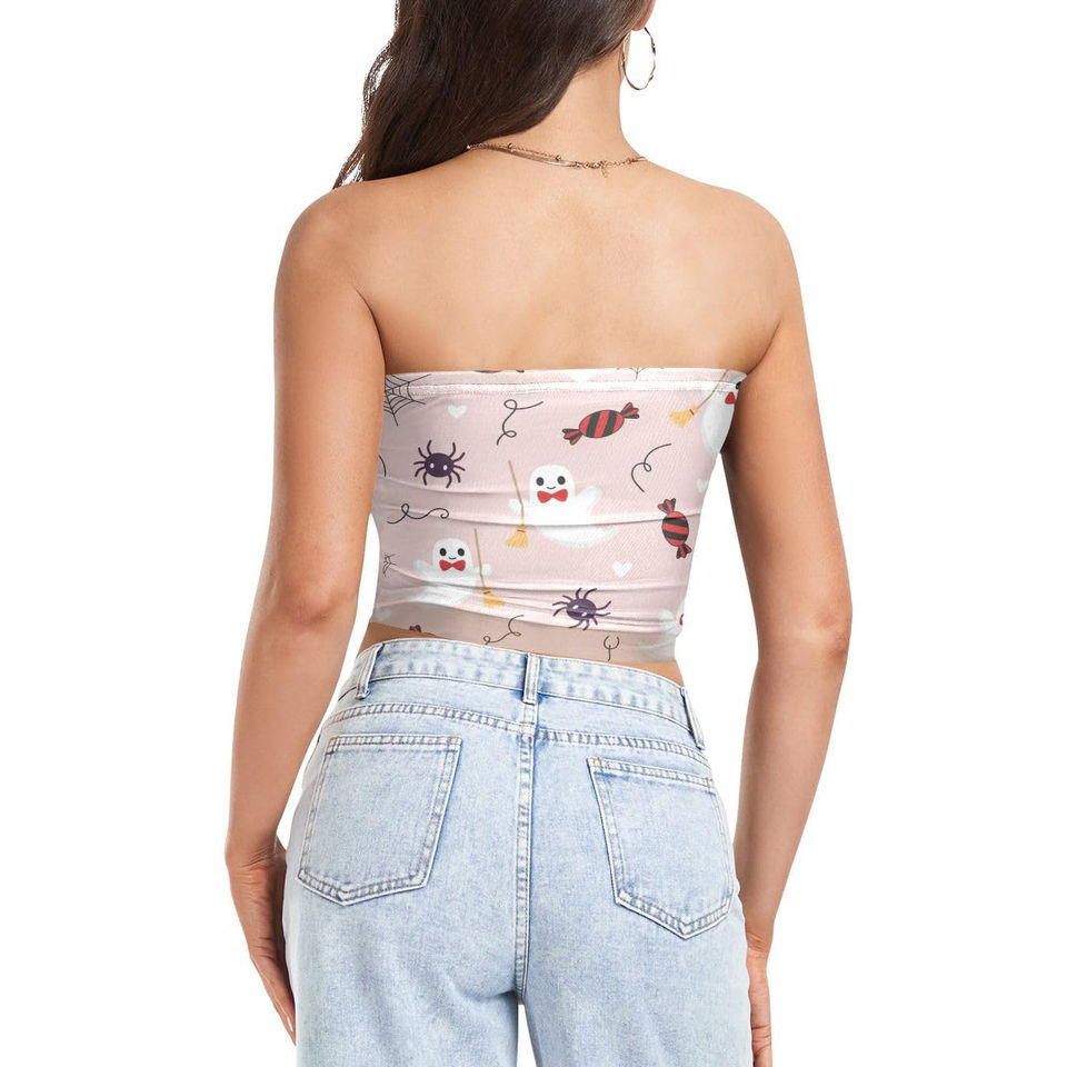 Top Corto sin Tirantes con Estampado Lindo para Mujer, Color Rosa Claro, Transpirable, OEM 2026