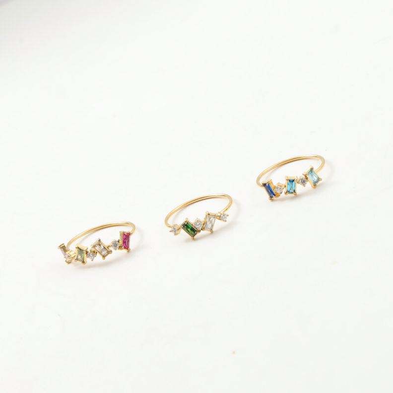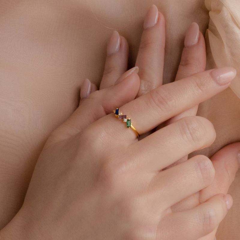 Anillo de circonita rectangular redondo colorido delicado para mujer, joyería de acero inoxidable chapada en oro de 18 quilates, anillos sin deslustre al por mayor
