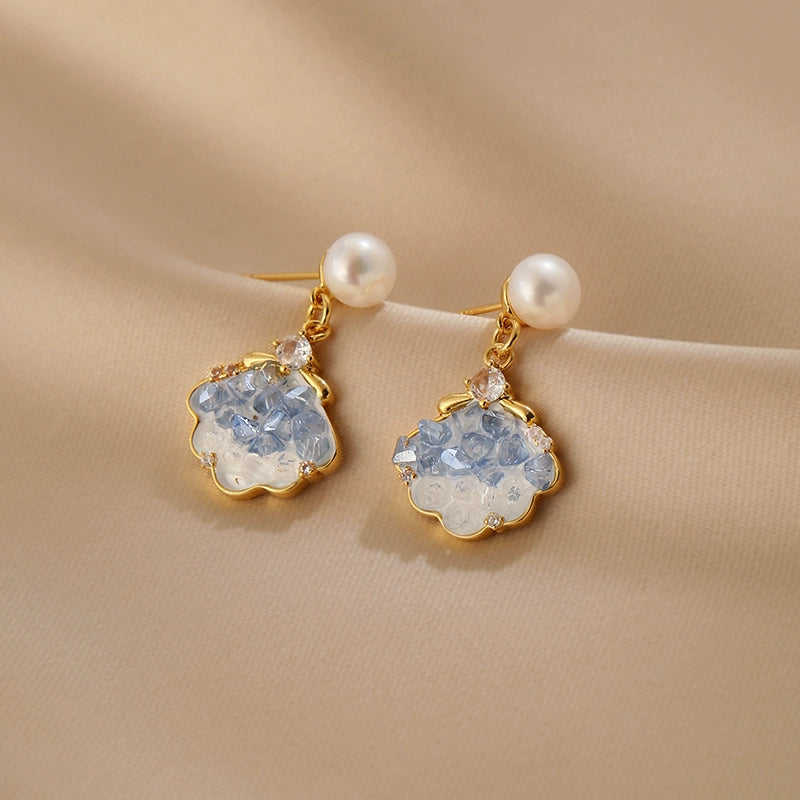 Pendientes de Perlas Naturales Delicadas WENCHI 1589 para Mujer con Diseño de Joyería Elegante de Cristal en Forma de Nube
