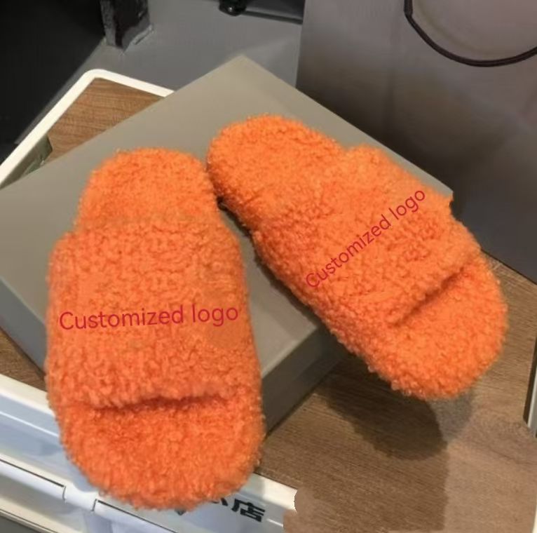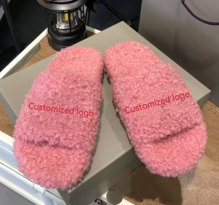 Pantuflas Bordadas de Diseñador para Mujer Diapositivas de Piel Balenciaga Zapatos de Casa Cálidos de Invierno para Interiores