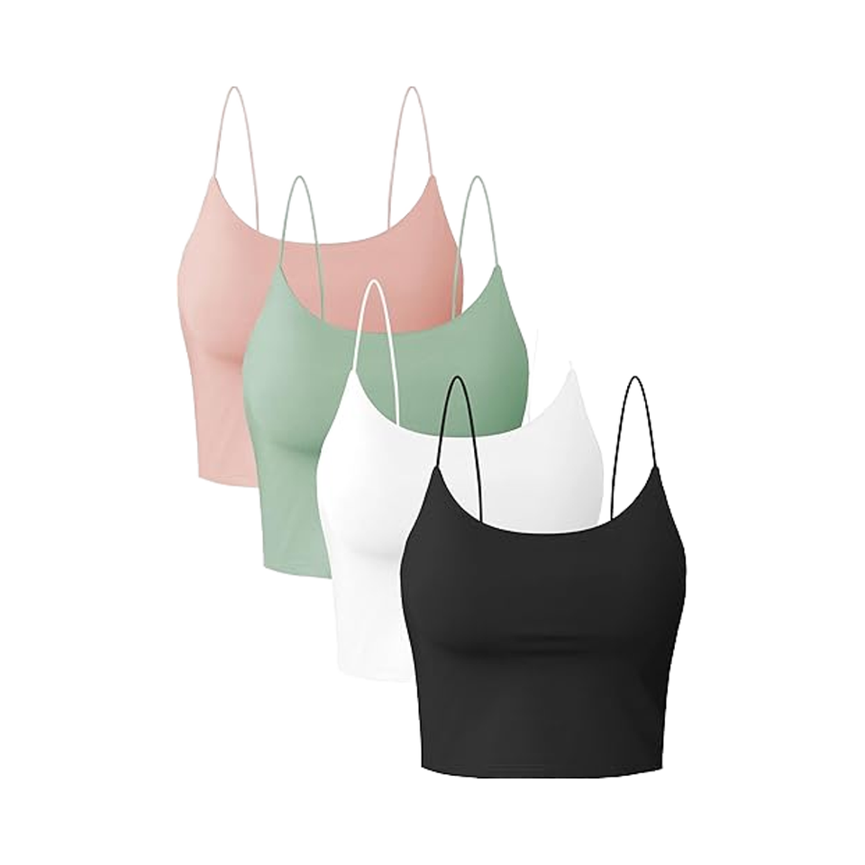 Camiseta sin mangas corta de doble capa para mujer, camisola sin mangas corta sólida básica con tirantes finos, recortada sólida básica de doble capa