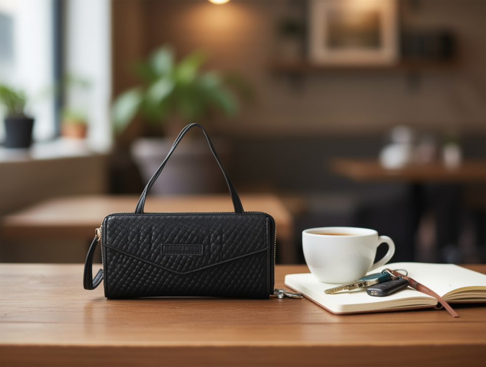 Cartera de mujer con doble cremallera, mini, de microfibra, cuero sintético, diseño de diamantes, estilo clásico, con correa para la muñeca