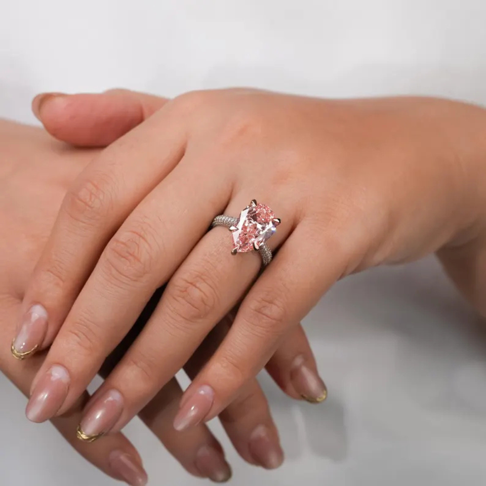 Nombre del Producto:Anillo de Diamante de Laboratorio Corte Pera Rosa Intenso Fancy