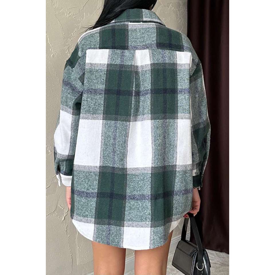 Camisa de Mujer Estilo Lumberjack con Bolsillo Color Esmeralda, Colección de Blusas y Camisas al por Mayor