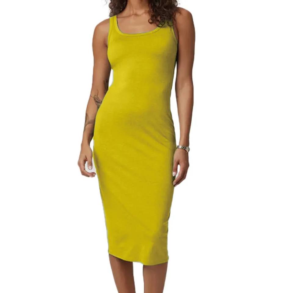 Vestido Midi esencial para mujer Sujetador incorporado Cuello redondo Tela elástica ultrasuave para mayor comodidad