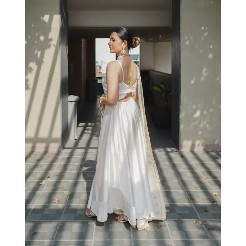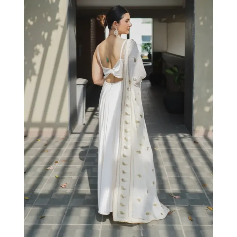 Trajes de Satén Blancos de Primera Clase para Mujer con Bordado Intenso, Diseño Elegante para Fiesta de Noche, de la India