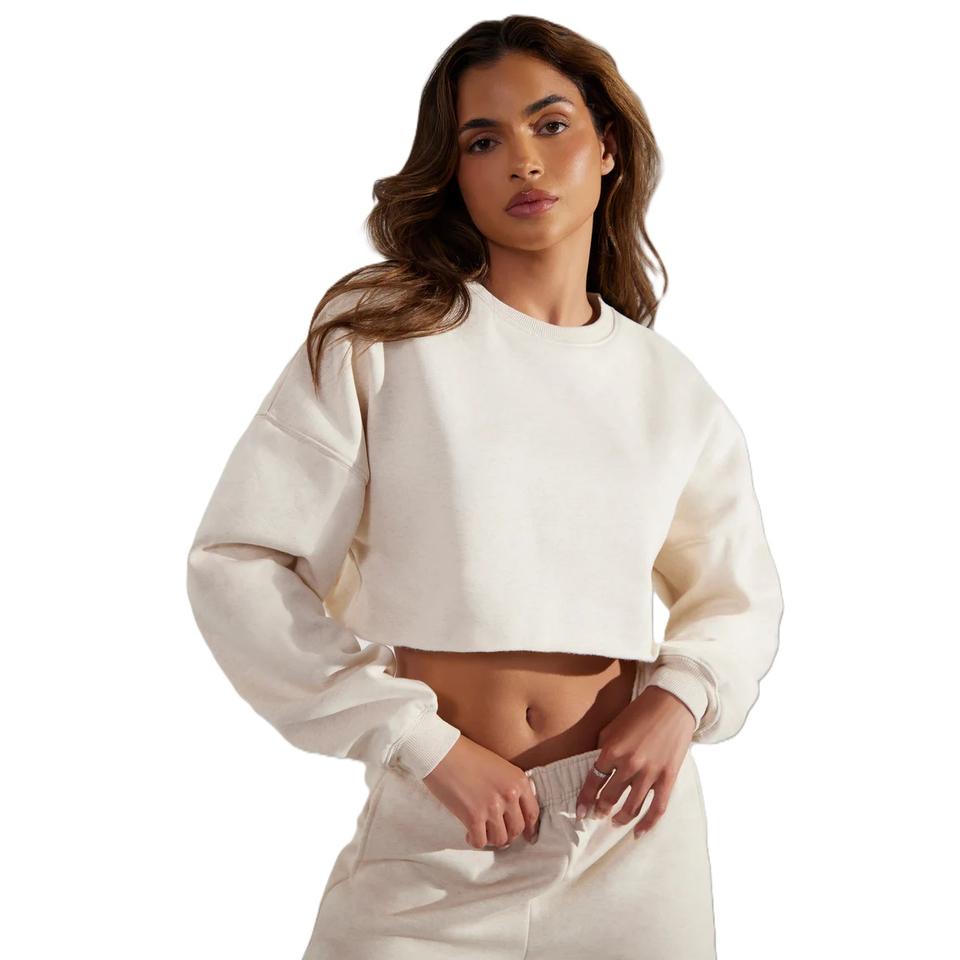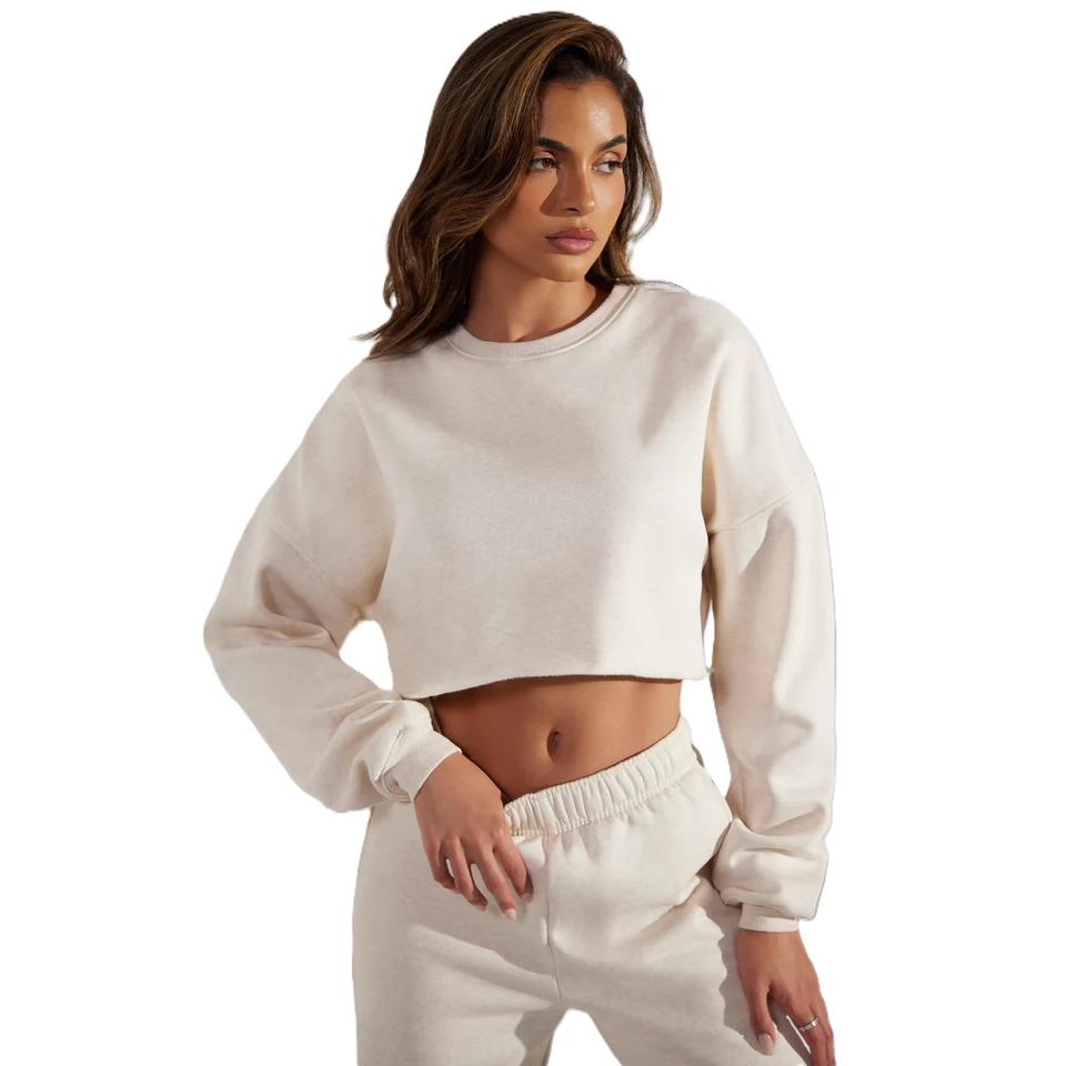 Sudadera corta de manga larga de punto de lana de algodón suave y cálido para mujer, Otoño Invierno, Primavera, logotipo frontal personalizable