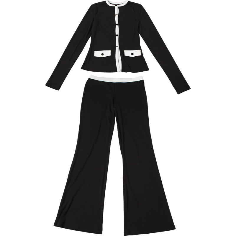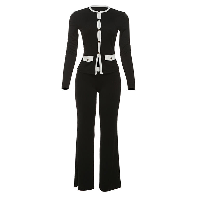 Conjunto Casual de 2 Piezas para Mujer, Otoño, Cuello Redondo, Botones, Bloques de Color, Cárdigan de Manga Larga y Pantalones de Cintura Alta