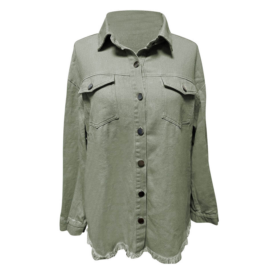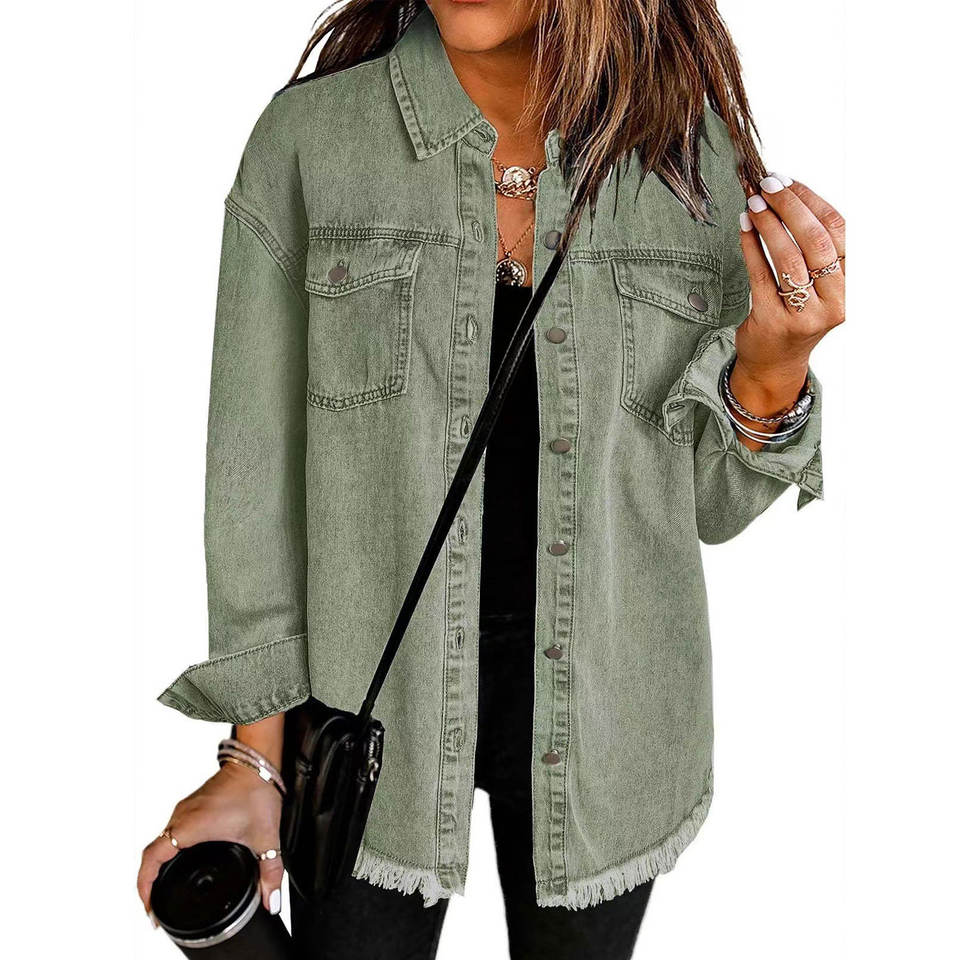 Chaquetas vaqueras de otoño y primavera para mujer, chaqueta vaquera de manga larga, camisa con botones, chaqueta sólida, chaquetones informales para novio con bolsillos