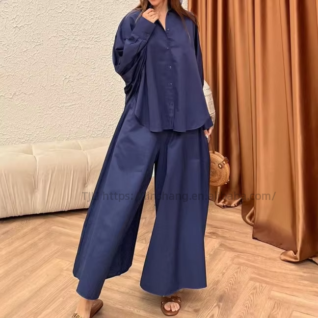 Conjunto de 2 Piezas de Moda para Mujer, Otoño/Invierno, Camisa de Manga Larga con Cuello Alto Pequeño y Pantalones Anchos Relajados