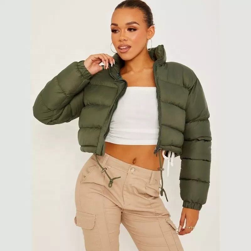 Chaqueta corta acolchada con cremallera para mujer, fabricantes personalizados, venta al por mayor, otoño e invierno, 2022