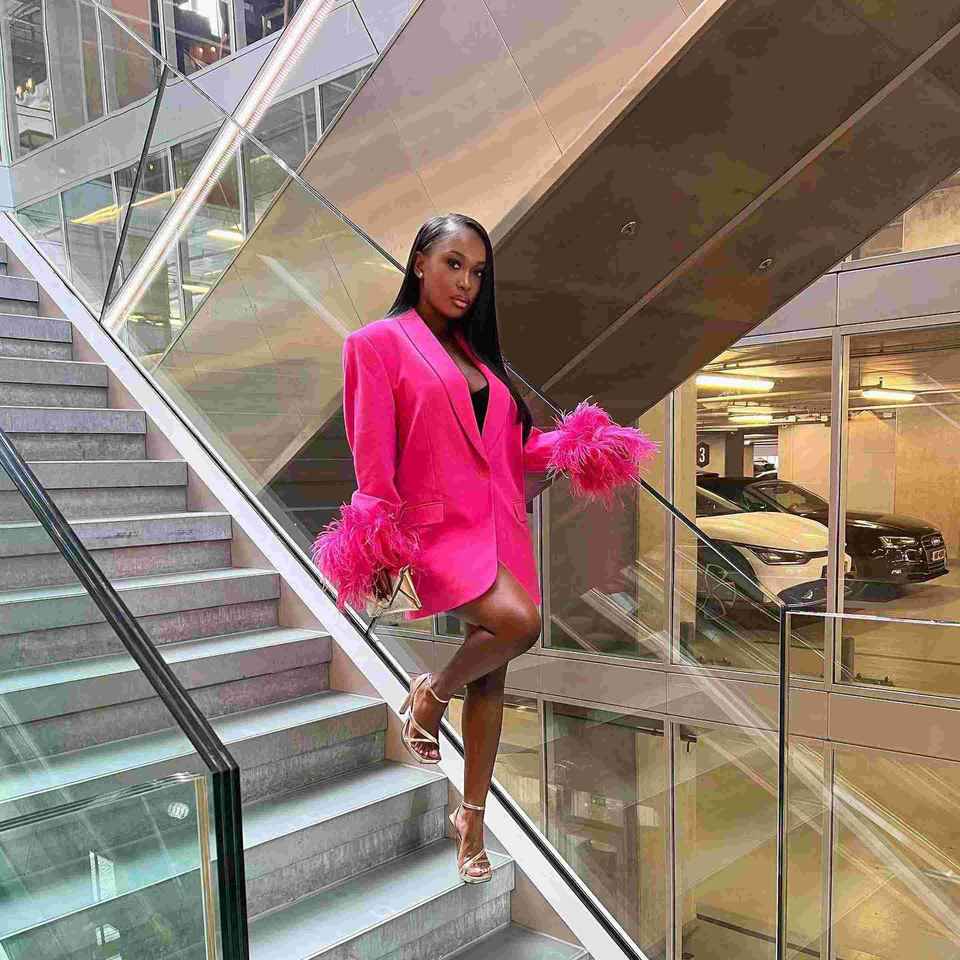 Chaqueta de plumas a la moda para mujer, traje de mujer, abrigo de manga larga para fiesta de negocios con un solo botón con piel
