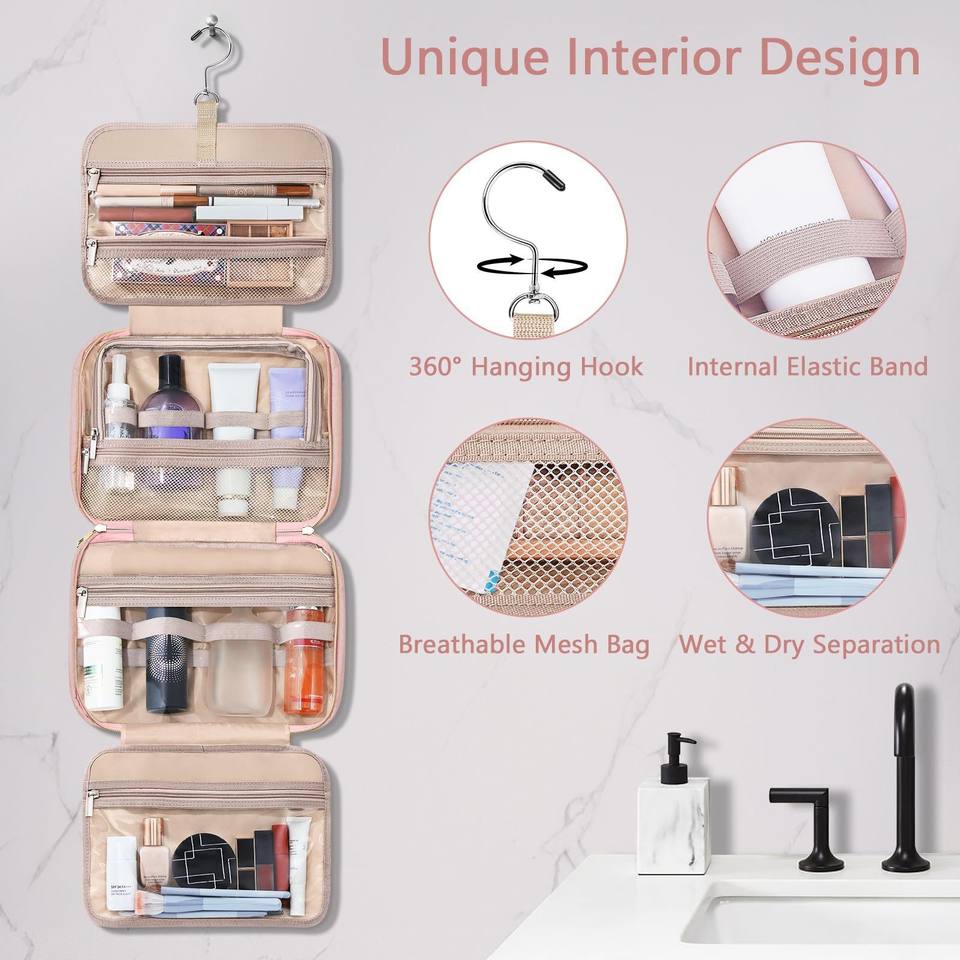 Bolsa de Maquillaje Grande de Cuero PU para Mujer, con Cierre de Cremallera, para Artículos de Aseo, con Colgador para Viaje, Almacenamiento de Joyas - Bolsas de Cosméticos