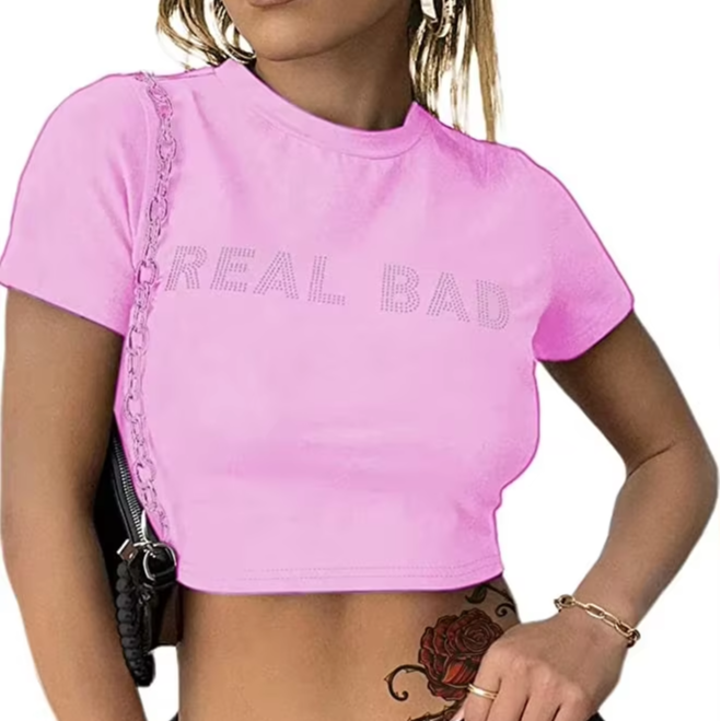 Camiseta de manga corta de moda para mujer, nueva almohadilla asimétrica para el hombro, sin tirantes decoración, diseño plisado, dulce verano
