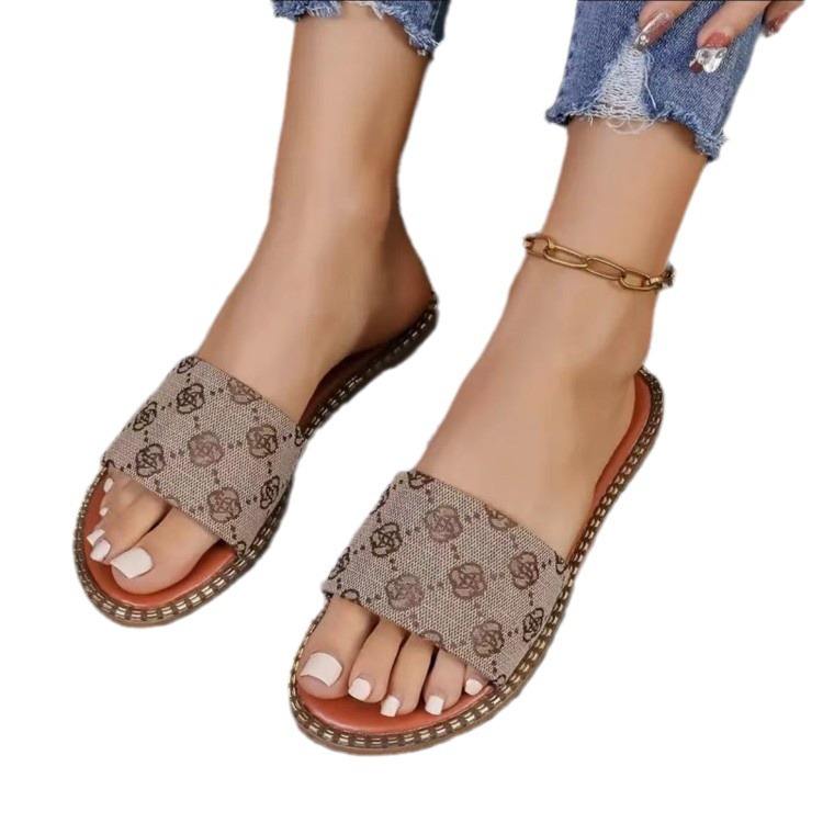 Sandalias Planas Bordadas para Mujer, Talla Grande, Ligeras, para Playa, Moda de Verano
