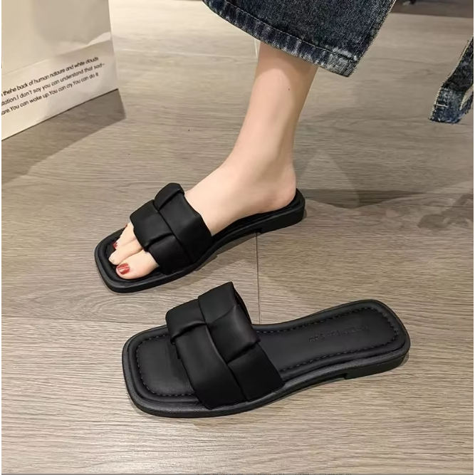 Sandalias de playa de fondo plano para mujer, zapatillas de verano a cuadros en blanco y negro con bloqueo de Color coreano, nueva versión, función impresa