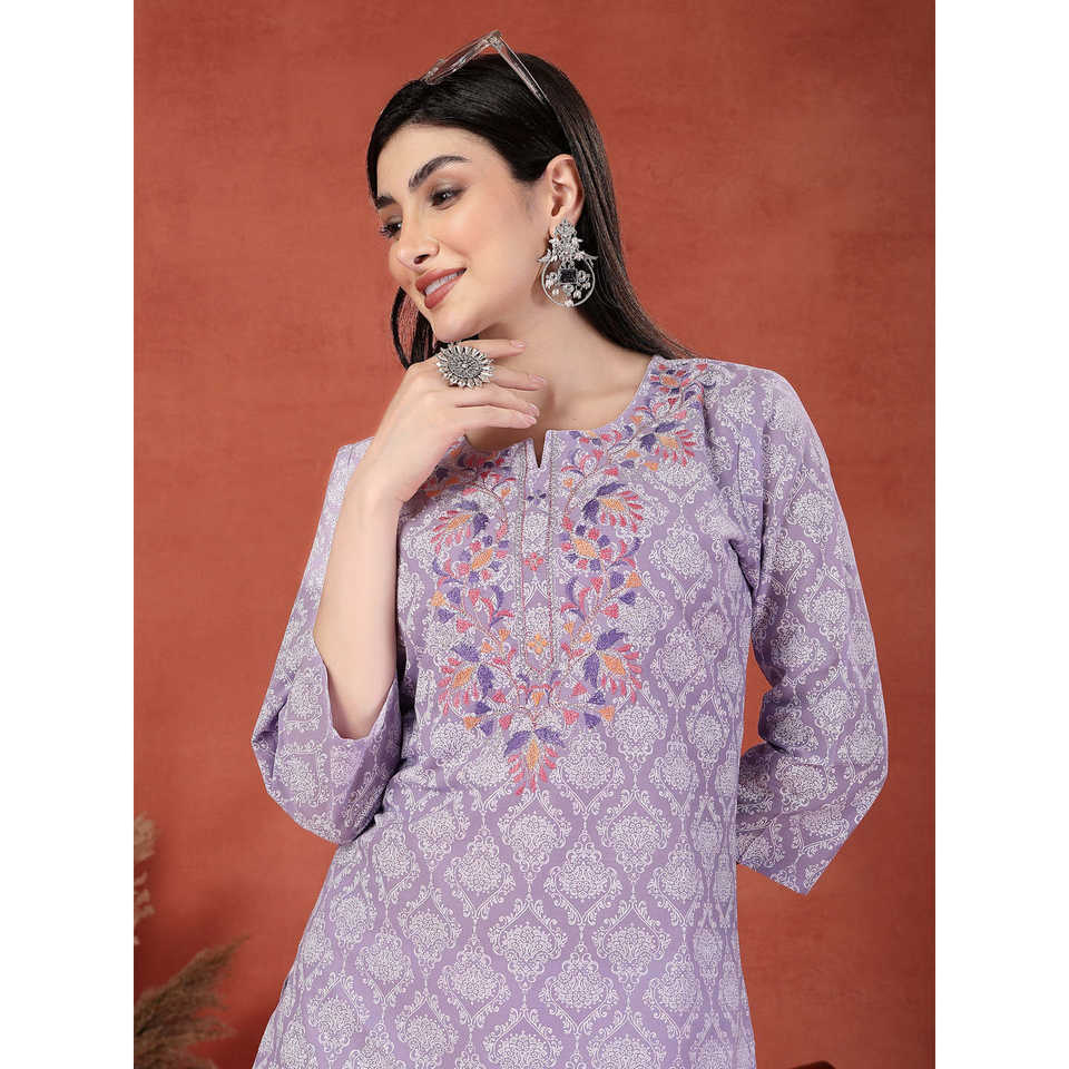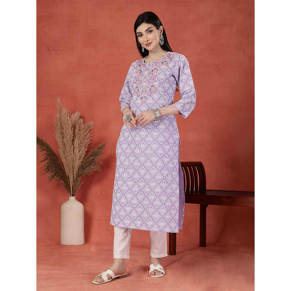 Kurta Recta con Estampado Floral y Bordado para Mujer, Cuello en V, Transpirable, de Algodón Puro, Elegante, Largo hasta la Rodilla, Talla 5XL, Suministro ODM