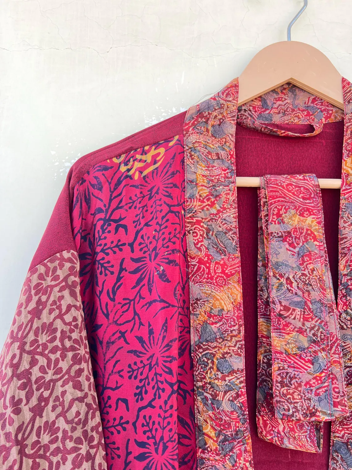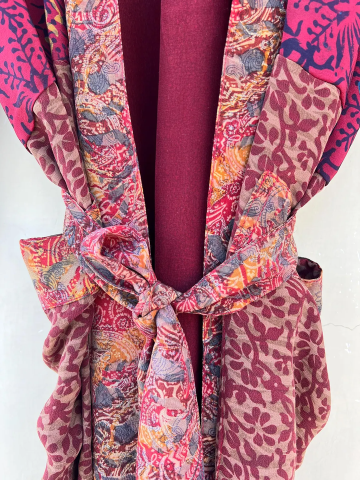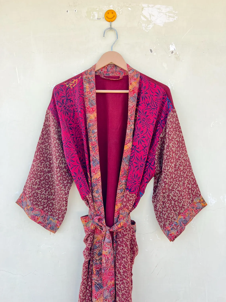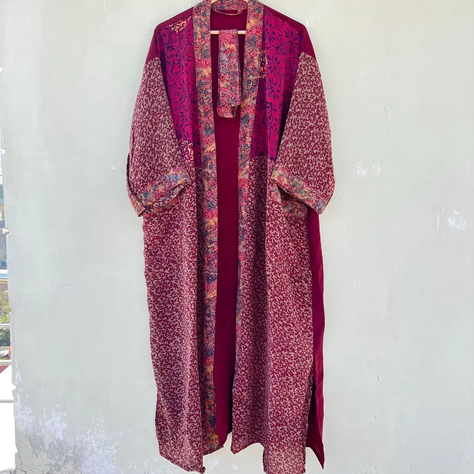 Kimono de seda floral de talla libre para mujer, bata larga caftán para primavera, verano y otoño