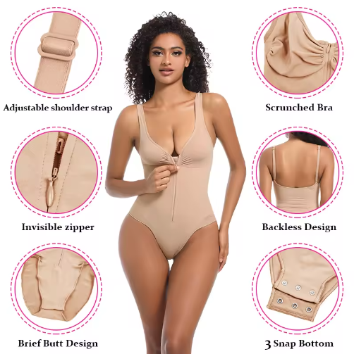 Body de mujer con cremallera invisible frontal, cuello en V, sin costuras, transpirable, control firme, ecológico, top moldeador, sexy, traje de baño con logo