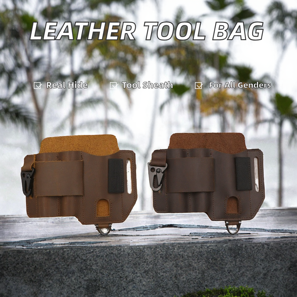 Riñonera de cuero genuino para mujer, organizador de funda multiherramienta Vintage para almacenamiento al aire libre, linterna táctica, cuchillo plegable