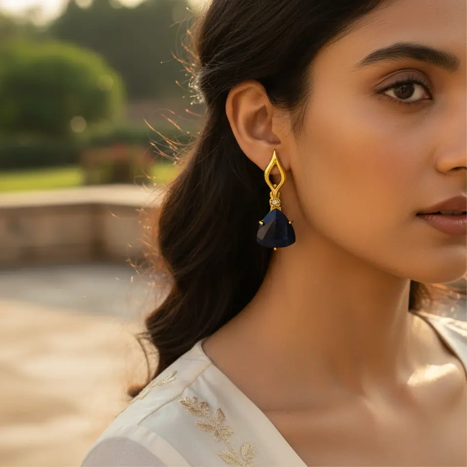 Pendientes de Mujer con Baño de Oro, Diseño de Triángulo con Piedra, Joyería de Moda