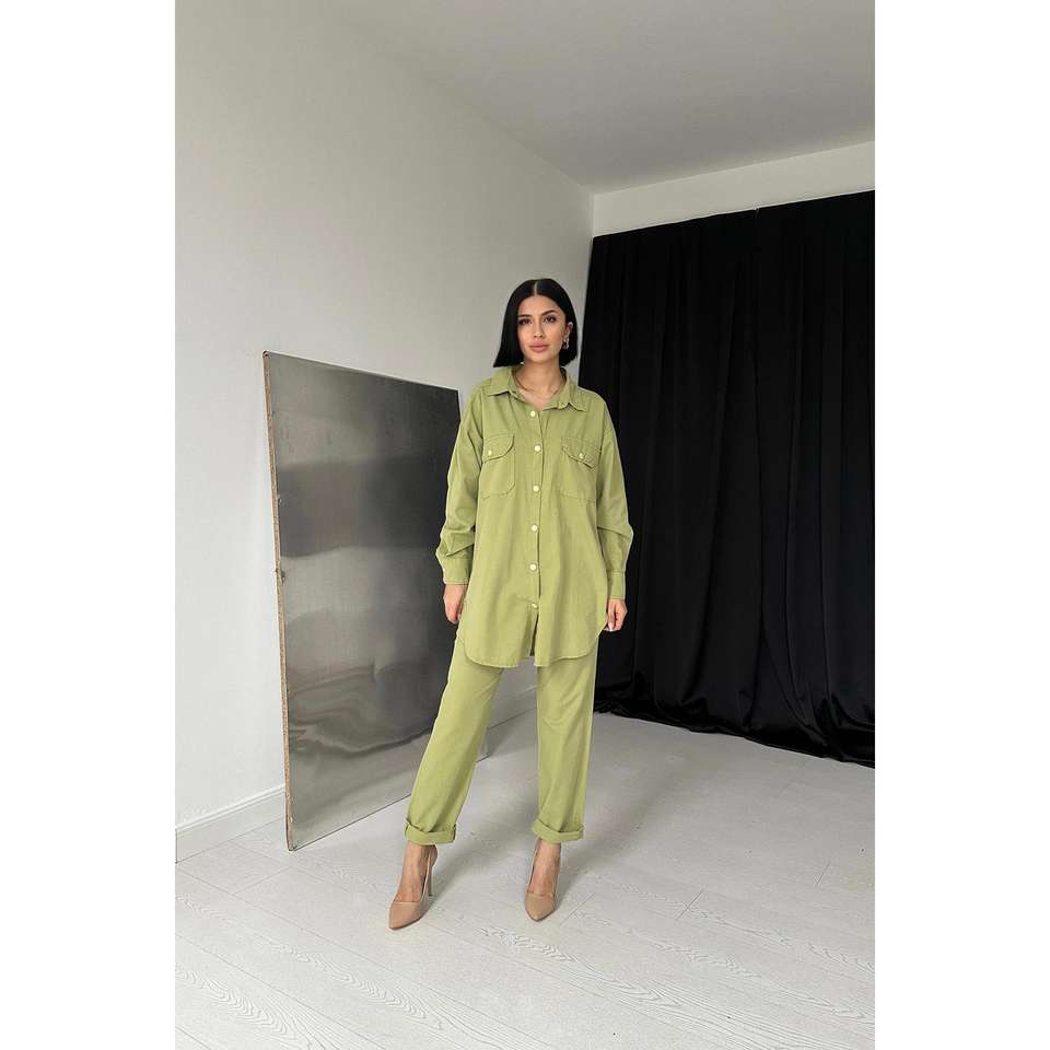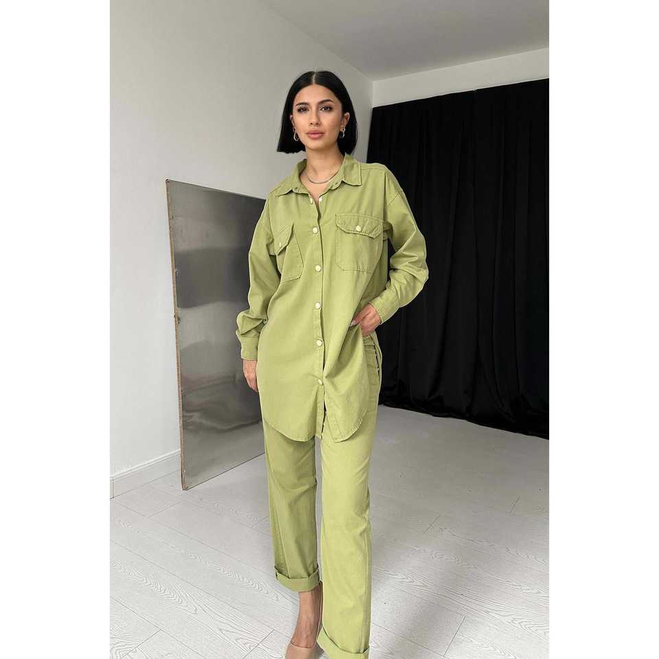 Conjunto de Camisa Verde y Pantalones con Botones a Presión para Mujer, Colección de Trajes al por Mayor