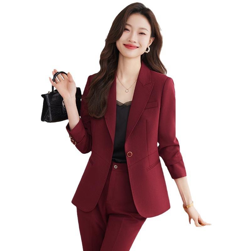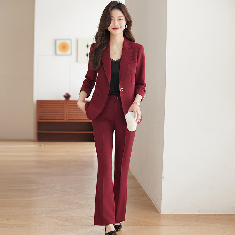 Women's Green Suit Set Polyester Formal Work Wear Spring Autumn Flared Pants Anti-Wrinkle Professional Office Uniform