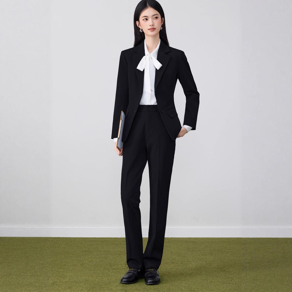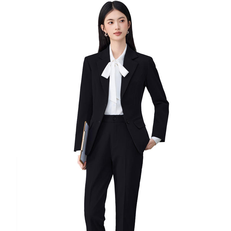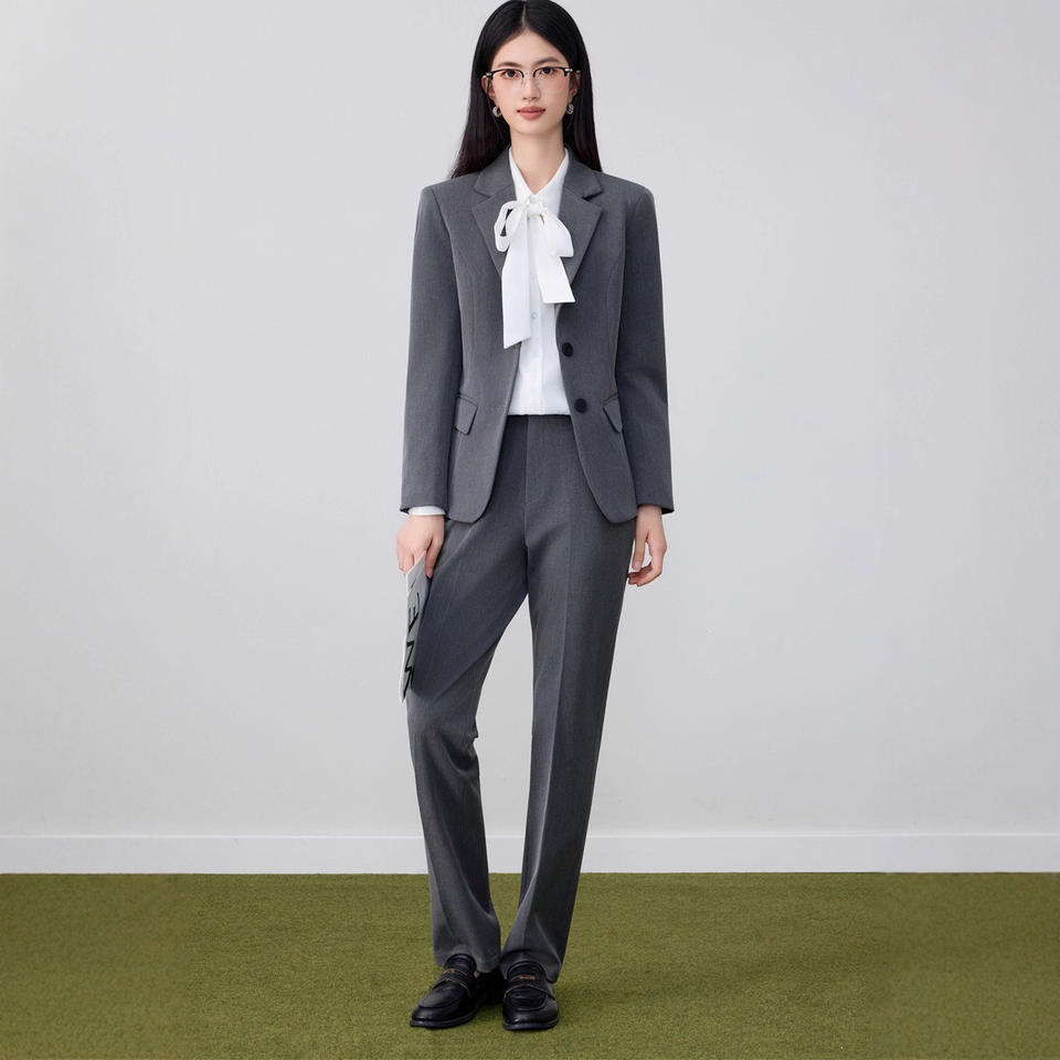 Women's Grey Suit Set Polyester Worsted Full Sleeve Spring Anti-Wrinkle Office Lady Professional Formal Wear