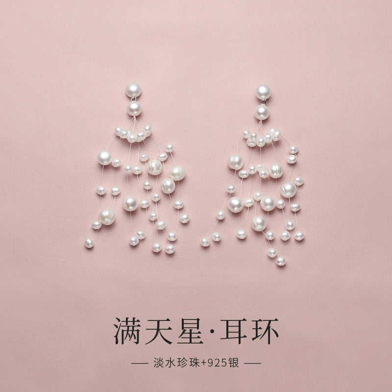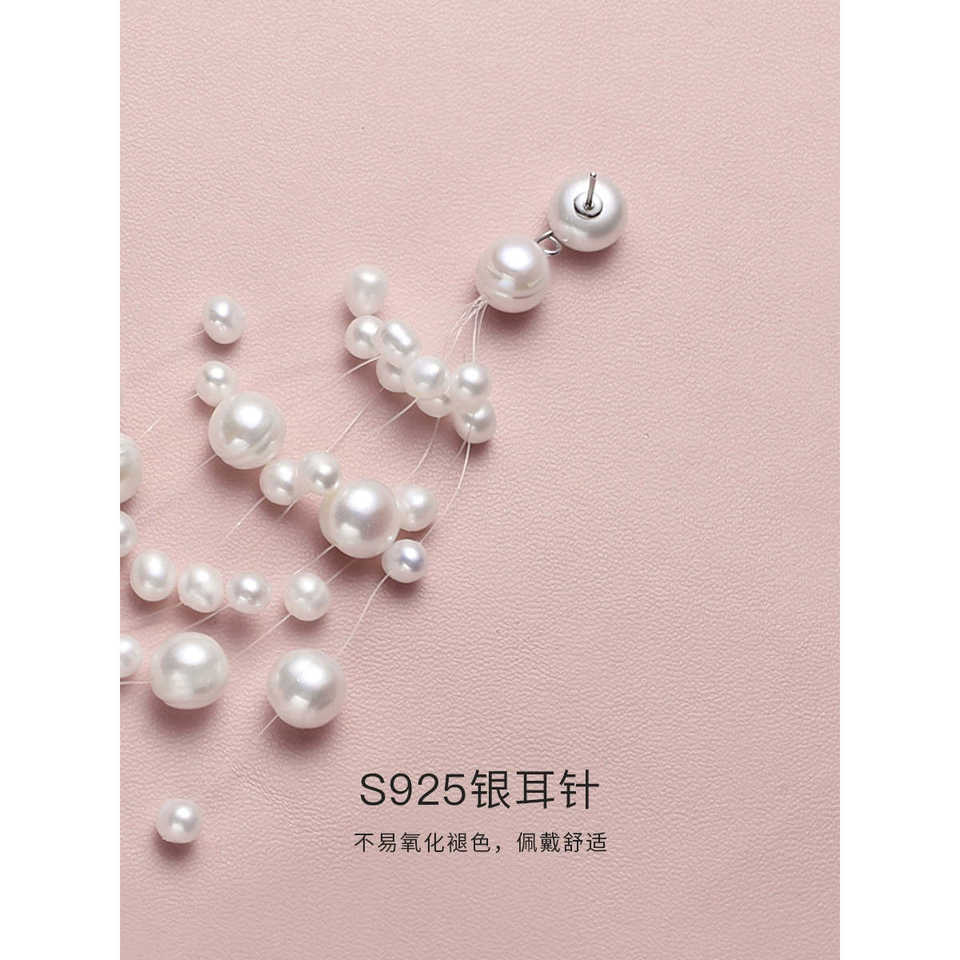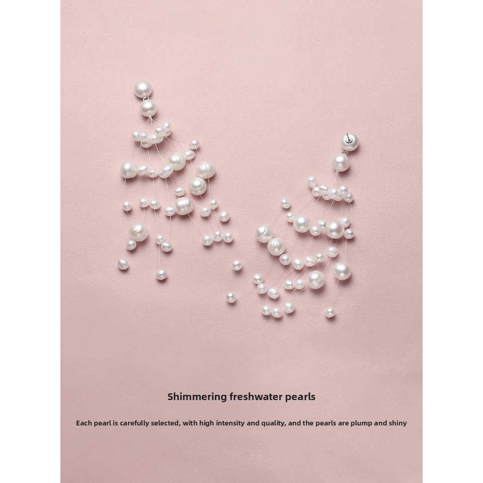 Juego de Collar y Aretes de Perlas Estilo Gitano para Mujer, Diseño Exagerado Largo de Agua Dulce Natural, 450g, para Novia, Boda