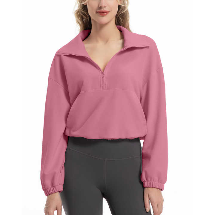 Nombre del producto:Sudadera con capucha y media cremallera para mujer