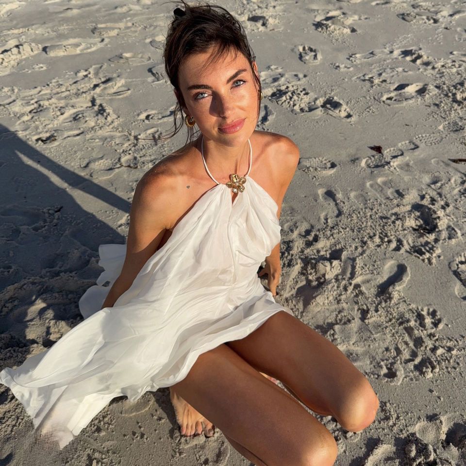 Vestido Mini Halter con Espalda Descubierta para Mujer, Vestido Fluido con Corte en A para Playa y Vacaciones