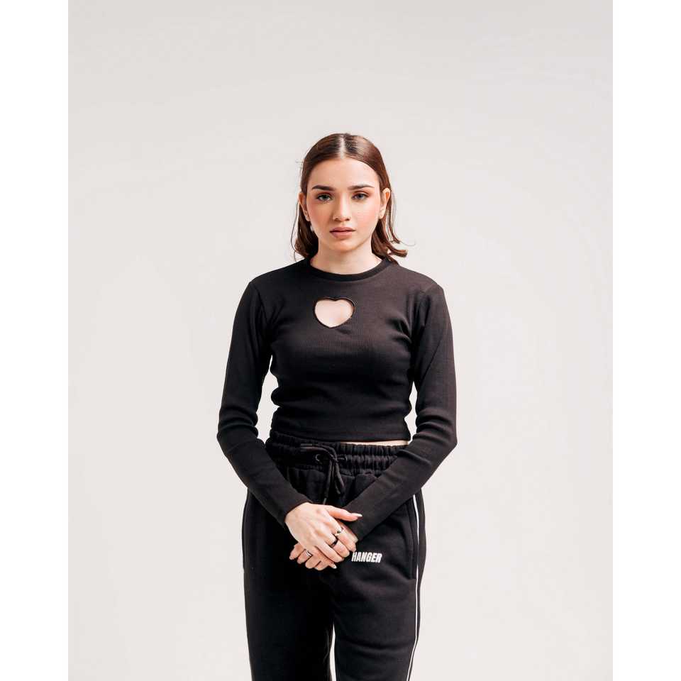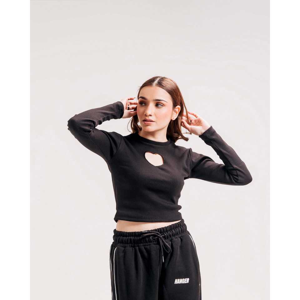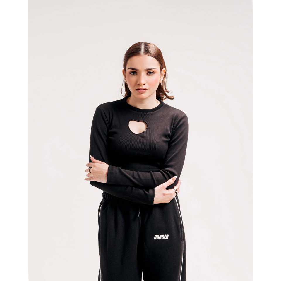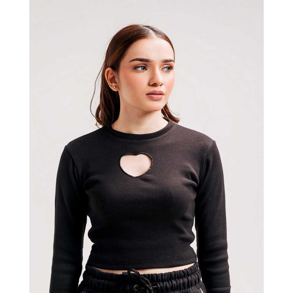 Tops de punto acanalado con corte en forma de corazón para mujer, diseño moderno de cobertura completa