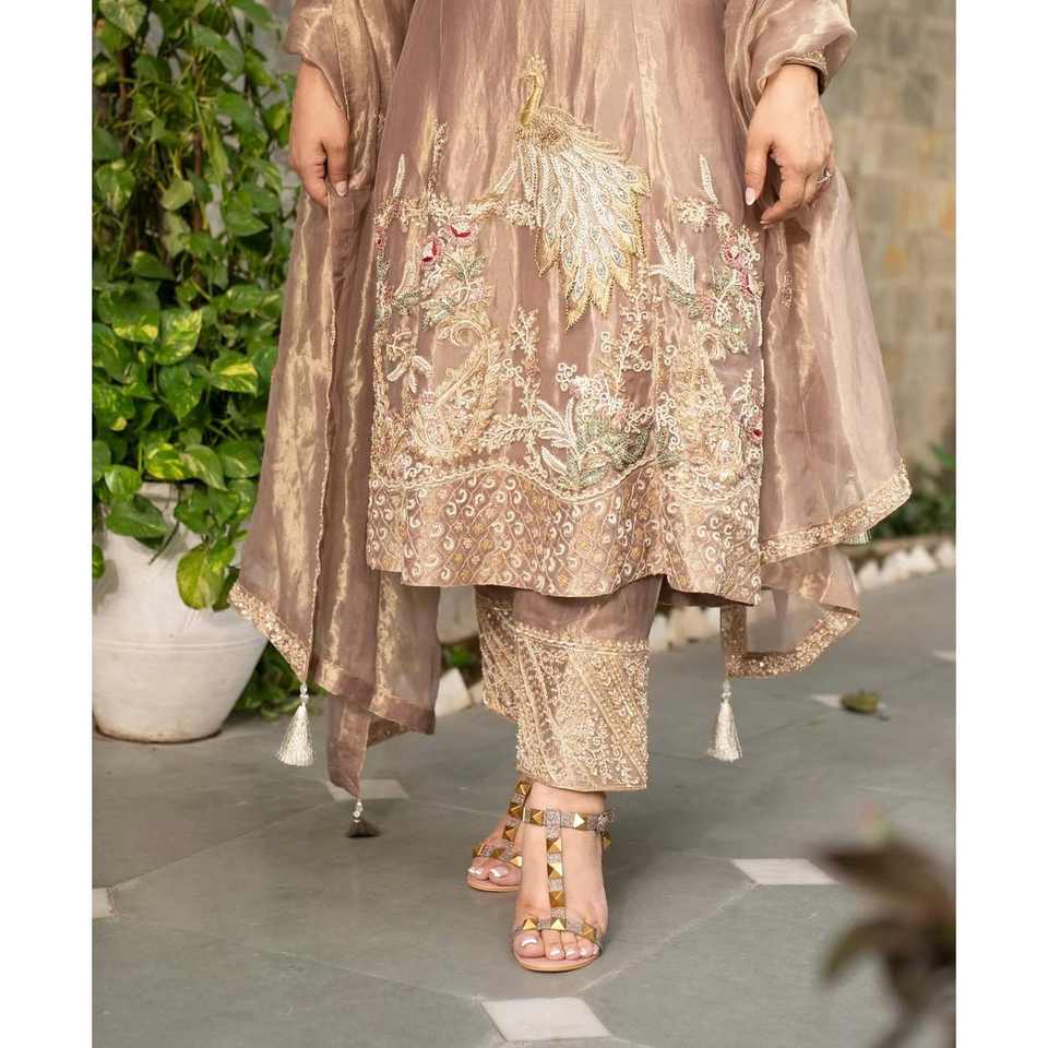 Conjunto de traje de fiesta de trabajo de secuencia de bordado pesado para mujer con trabajo de lentejuelas elegante