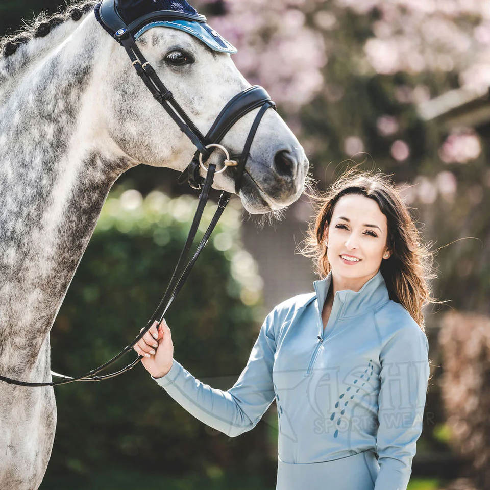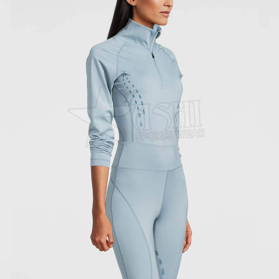 Camiseta de manga larga con capa base atlética de alta compresión para mujer, camiseta para correr de entrenamiento con cuello simulado para adultos para caballo ecuestre