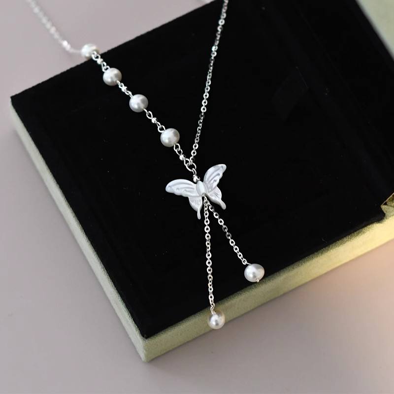 Collar con Colgante de Moda de Alta Gama para Mujer, Diseño Versátil con Concha de Mariposa Blanca y Perla de Agua Dulce para el Trabajo