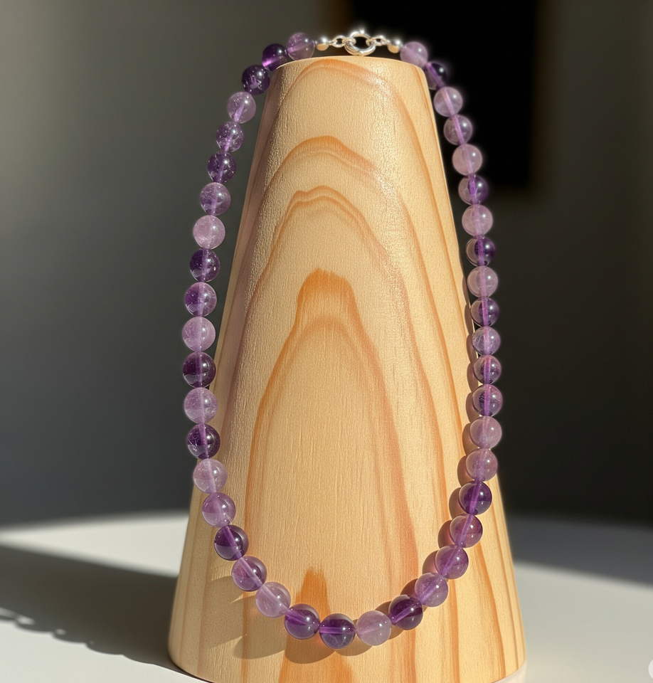 Collar de cuentas de piedra de amatista natural con diseño anudado a mano de plata 925 de alta calidad para mujer