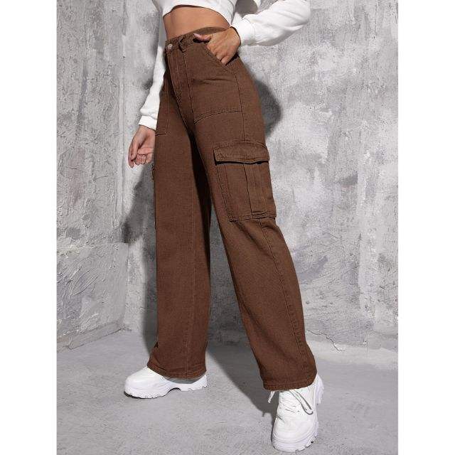 Jeans de Mezclilla Marrón de Tiro Alto para Mujer, 6 Bolsillos, Tela Elástica, Estilo Limpio, Color Sólido, Ecológico, Duradero, Plateado, Tallas 26-40