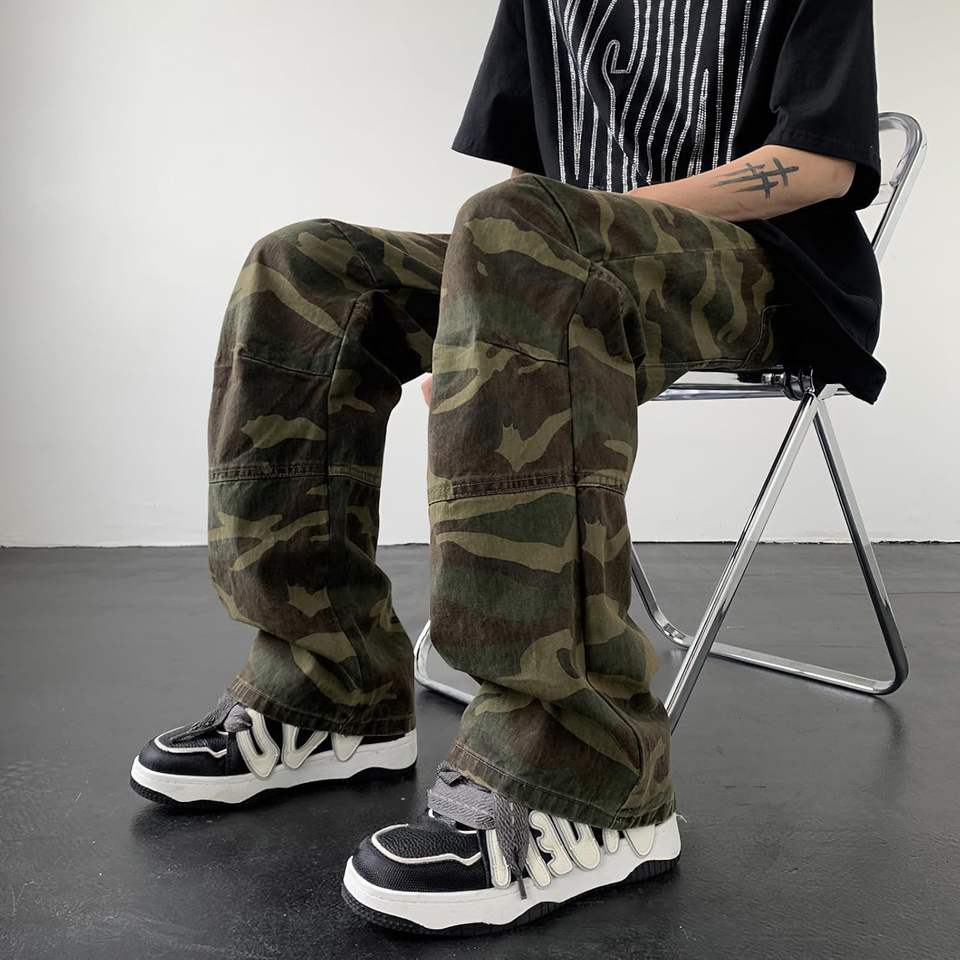 Jeans holgados de camuflaje de tiro alto para mujer, Pantalones rectos de pierna ancha con bolsillo con solapa, ajustados transpirables para chicas adolescentes