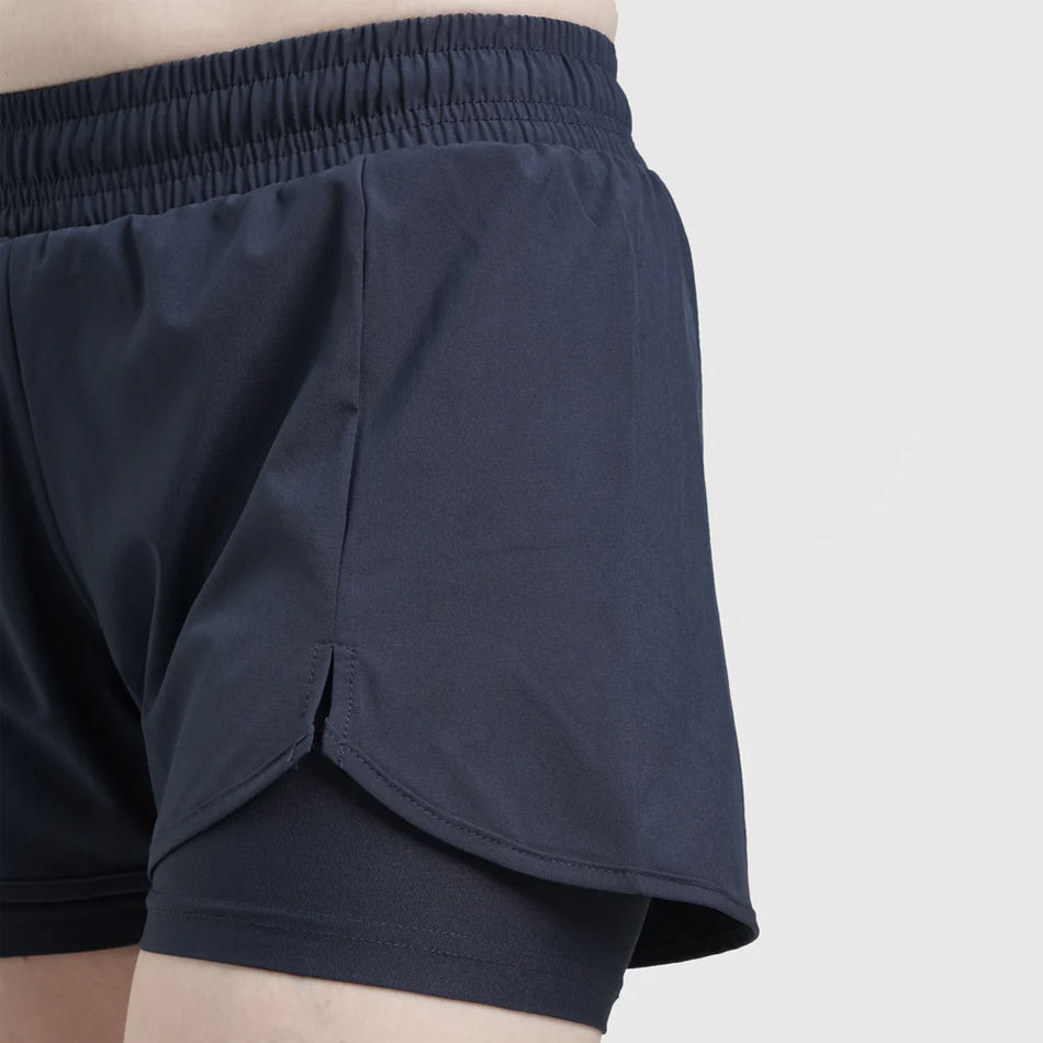 Pantalones cortos deportivos 2 en 1 de secado rápido para mujer con cordón de cintura alta transpirables ecológicos con bolsillos y volantes