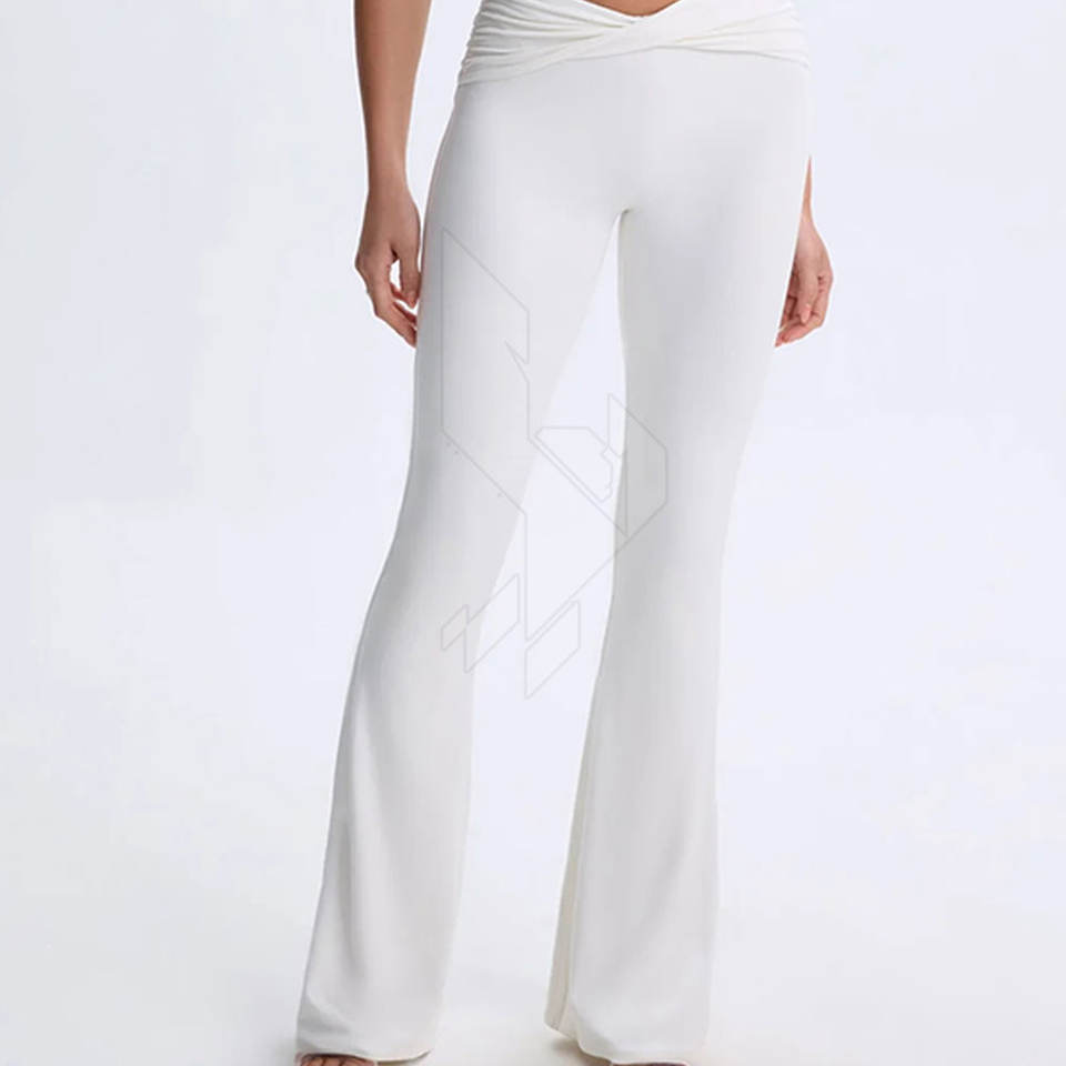 Pantalones de chándal acampanados de cintura alta para mujer con tejido de punto suave Cierre de cintura elástica Frente plano-Nuevo estilo de verano