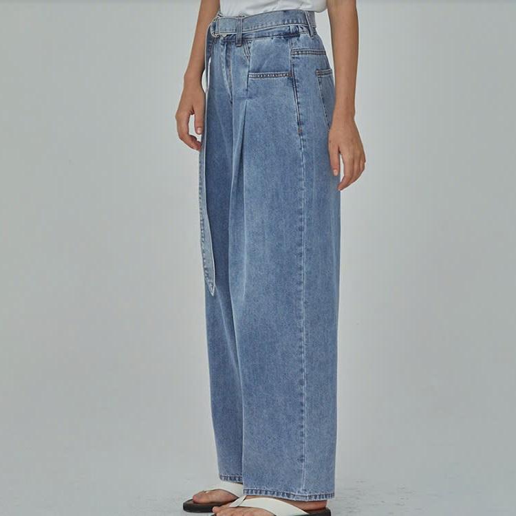 Nombre del Producto:Pantalones largos anchos con cinturón de mezclilla