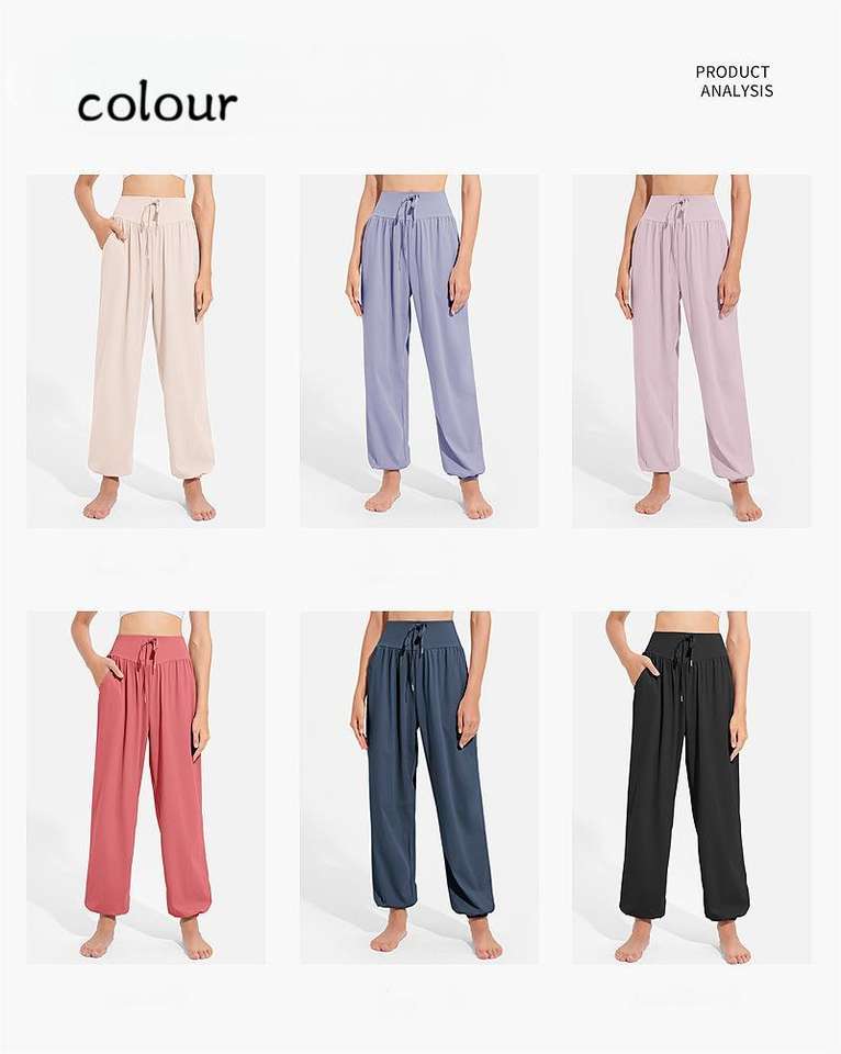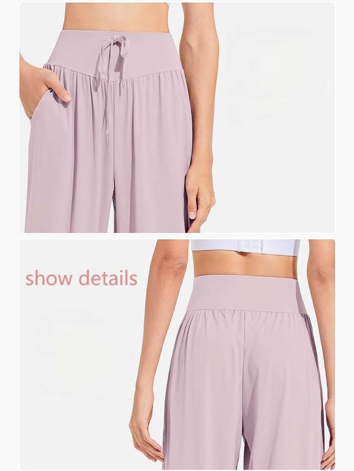 Pantalones de chándal informales holgados de cintura alta para mujer, pantalones de Yoga de baile transpirables de secado rápido con cordón, ropa de Fitness de piernas anchas