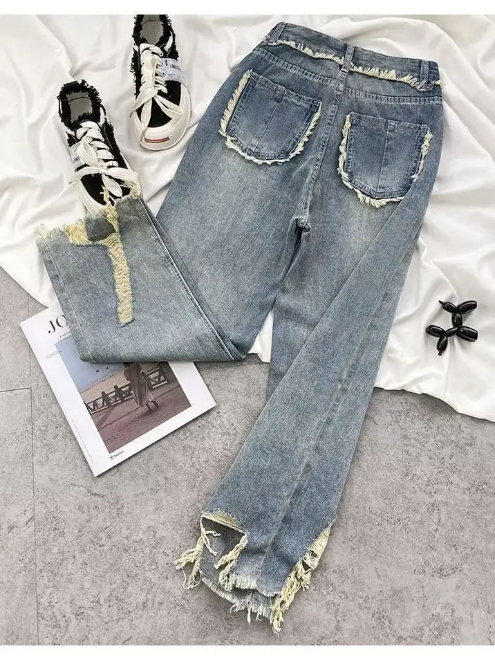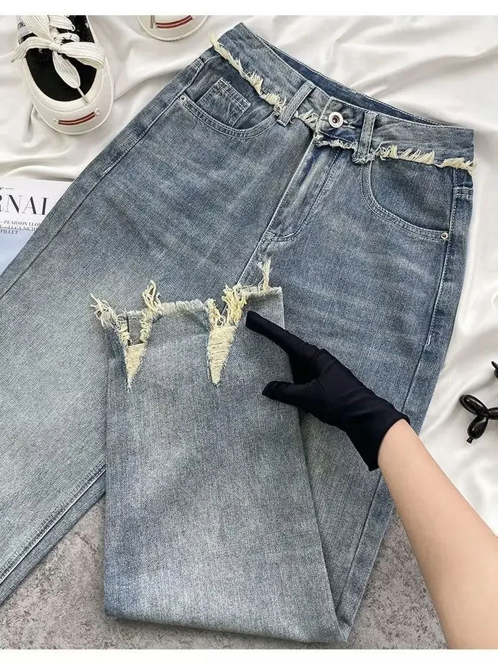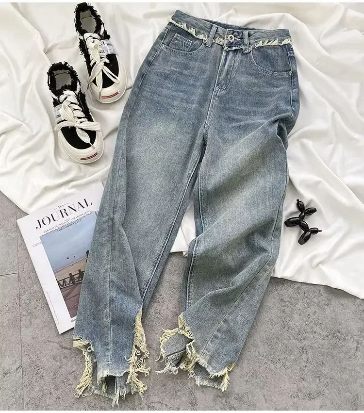 Keywords:Women's High-Waist Straight Jeans