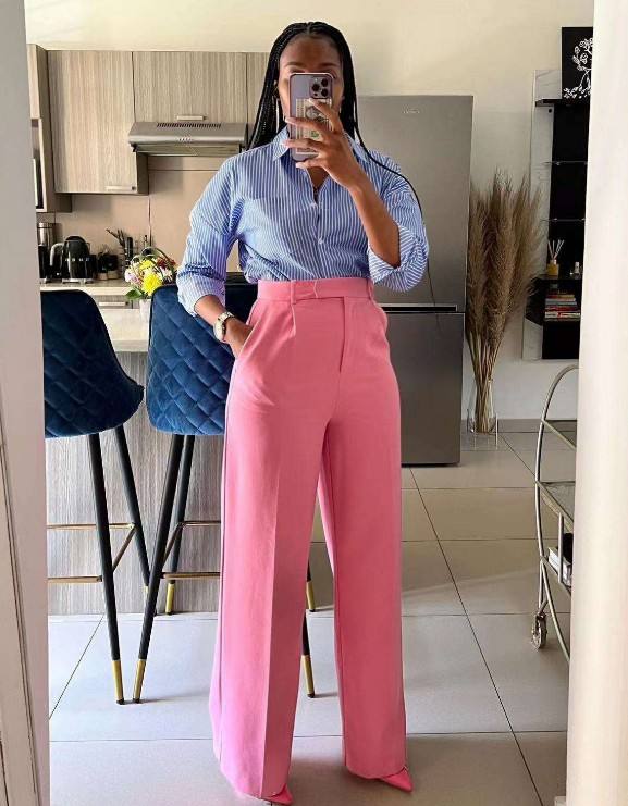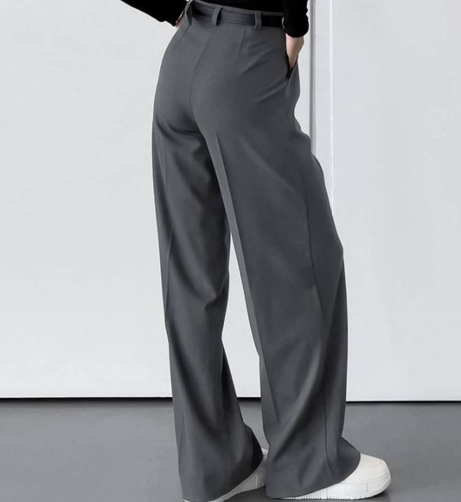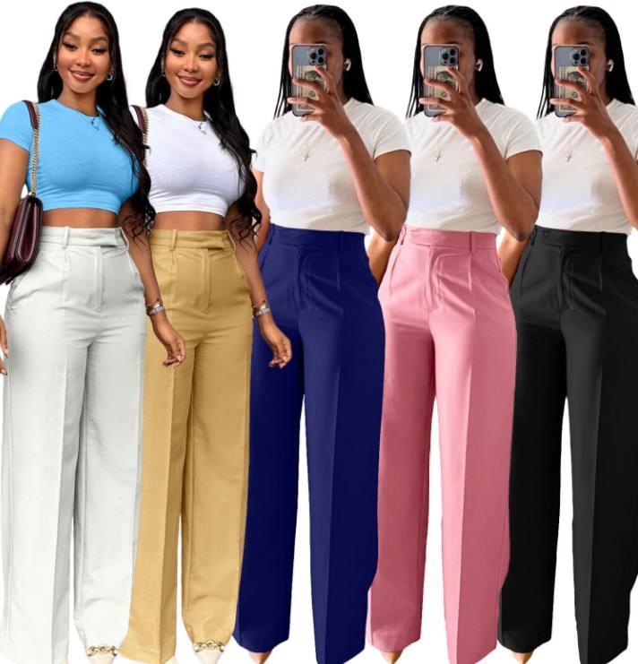 Pantalones de oficina de pierna ancha recta de cintura alta para mujer, pantalones de lona de Color sólido con cremallera, informales para primavera y otoño