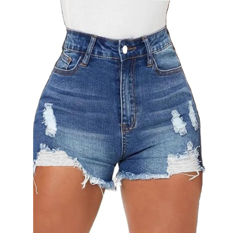 Pantalones cortos de mezclilla rasgados de cintura media de cintura alta para mujer, pantalones cortos vaqueros rectos desgastados, dobladillo deshilachado para ropa informal Sexy de verano