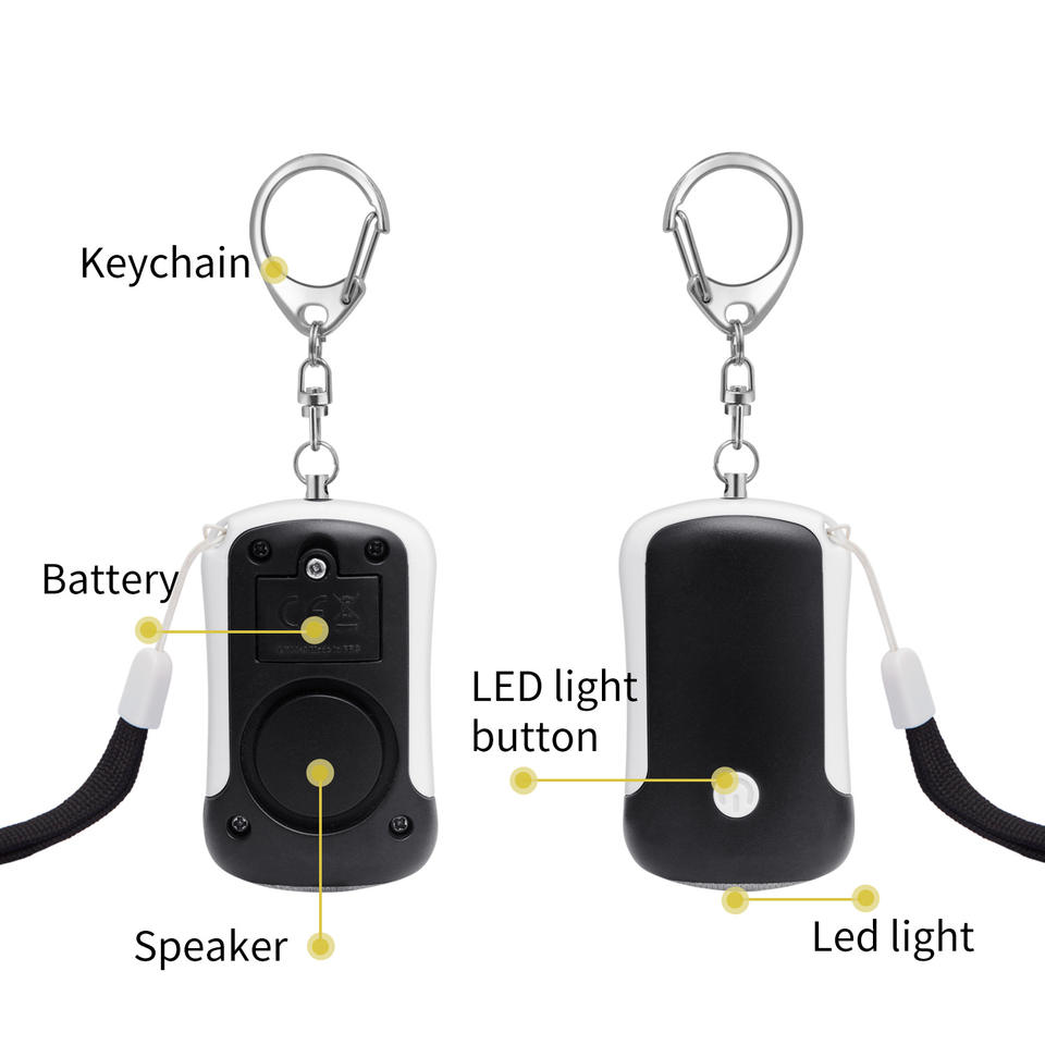 Llavero de antorcha LED para mujer con alarma de seguridad Dispositivo personal antipérdida para ancianos y niños